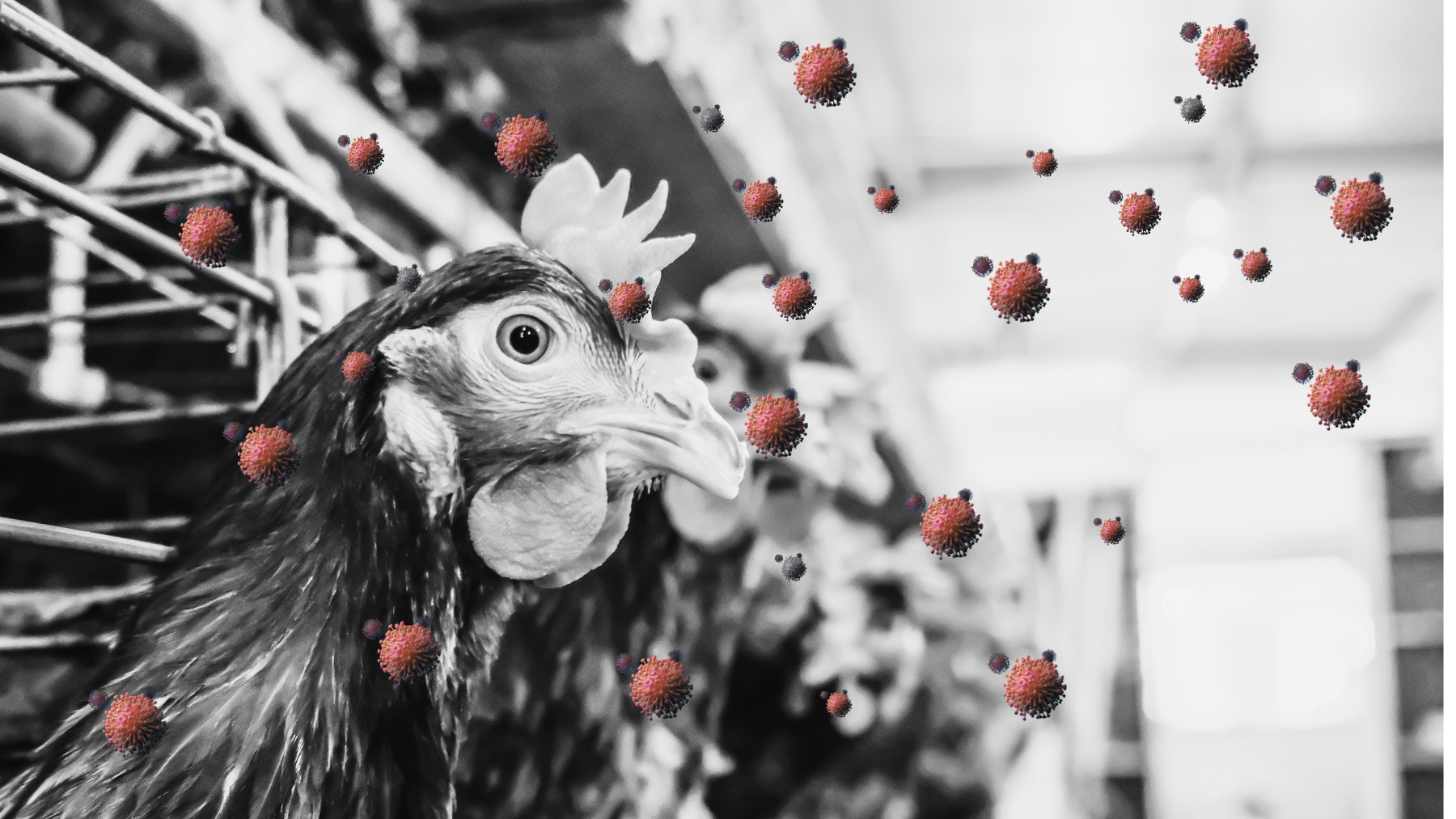 Poultry farms are densely populated environments where pathogens can easily spread. A major concern is the ease with which illnesses spread through both direct contact and airborne transmission.